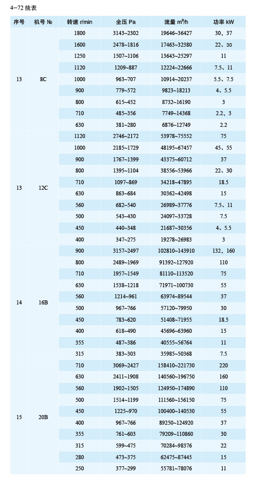 風機的傳動方式有A、B、C、D 四種:4-72型風機中,№2.8-5采用A式傳動, №6既既有A式傳動又有C式傳動,№ 8-12采用C、D式兩種傳動方式,№16-20采用B式傳動.